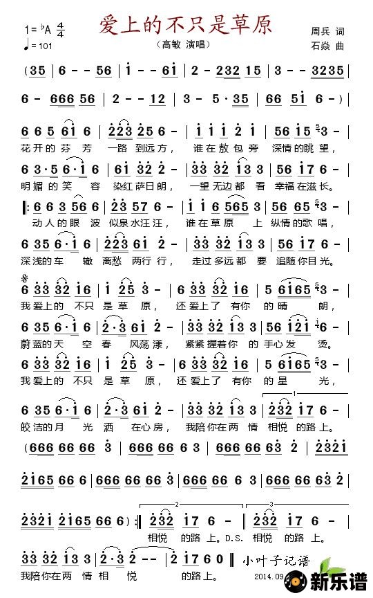 《爱上的不只是草原》简谱 高敏-小叶子制谱
