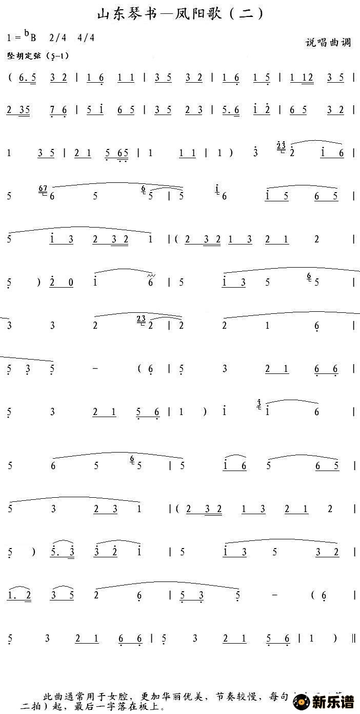 山东琴书-凤阳歌(二)/ 相关曲谱