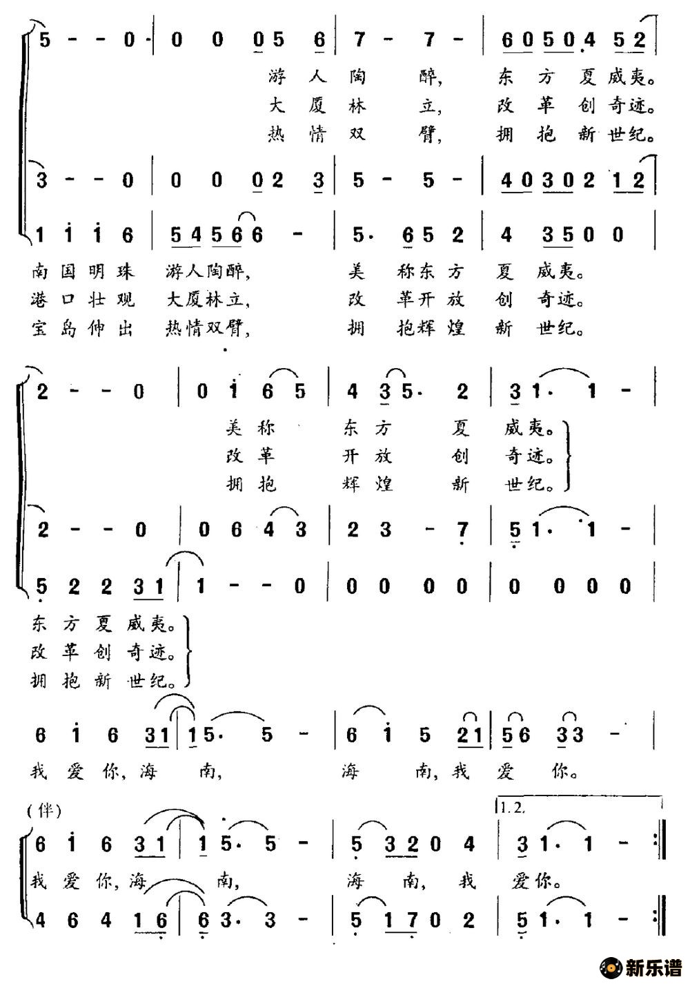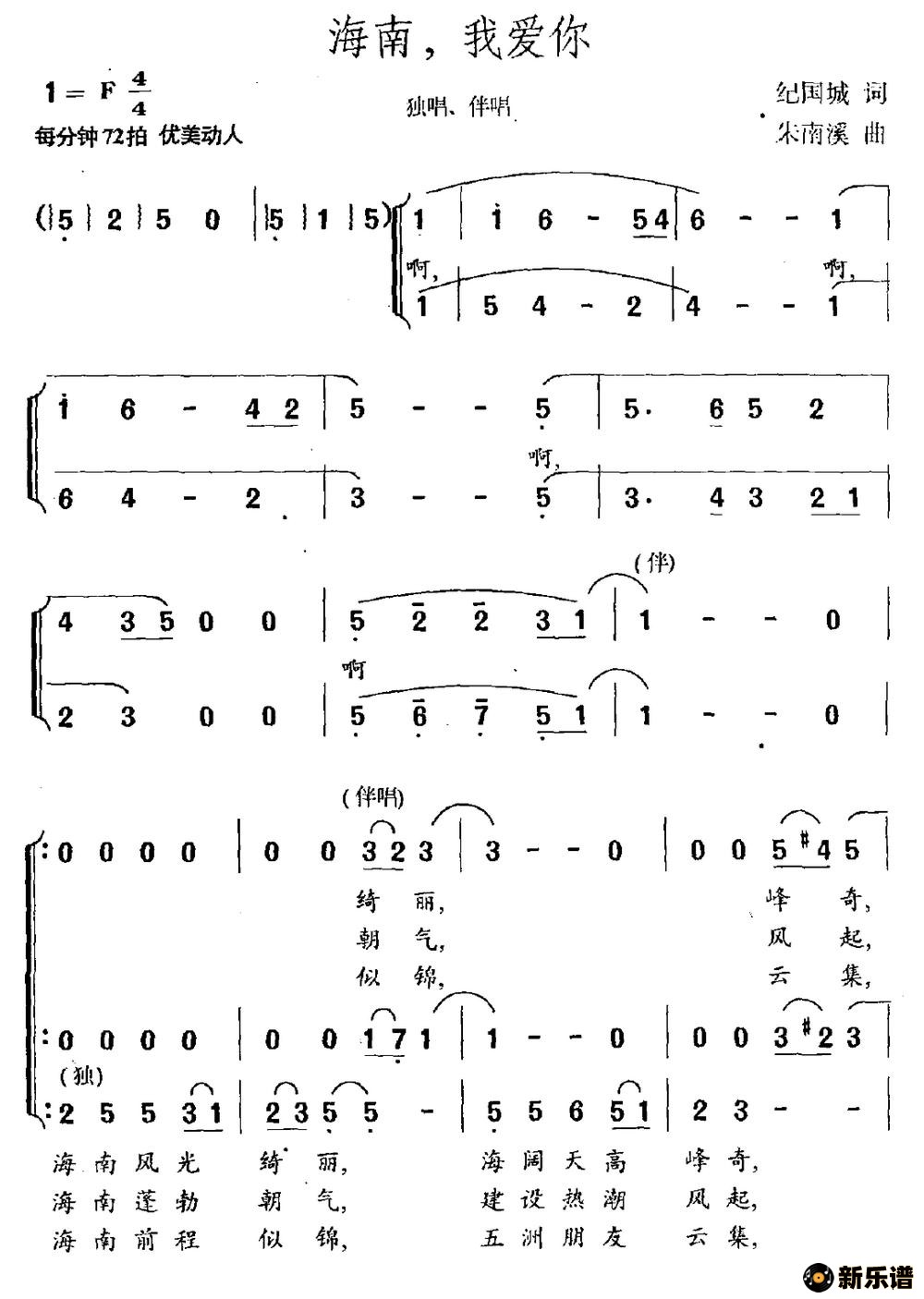 演唱的海南,我爱你歌词,海南,我爱你简谱.