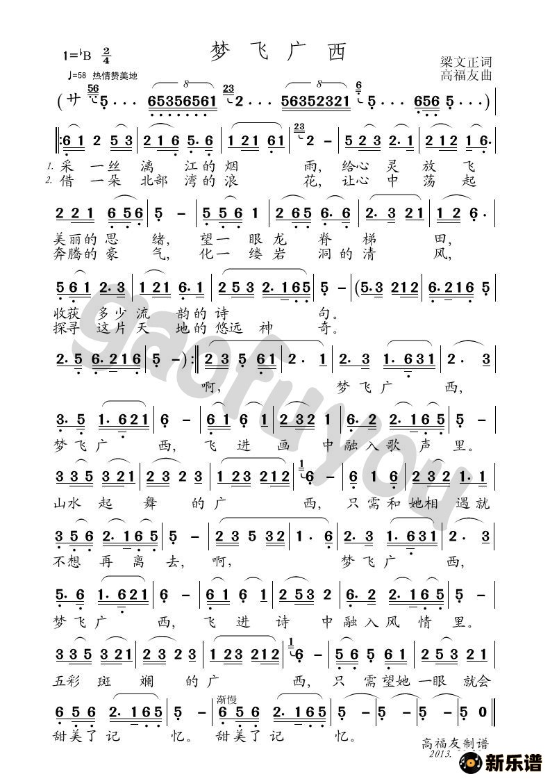 演唱的梦飞广西歌词,梦飞广西简谱.