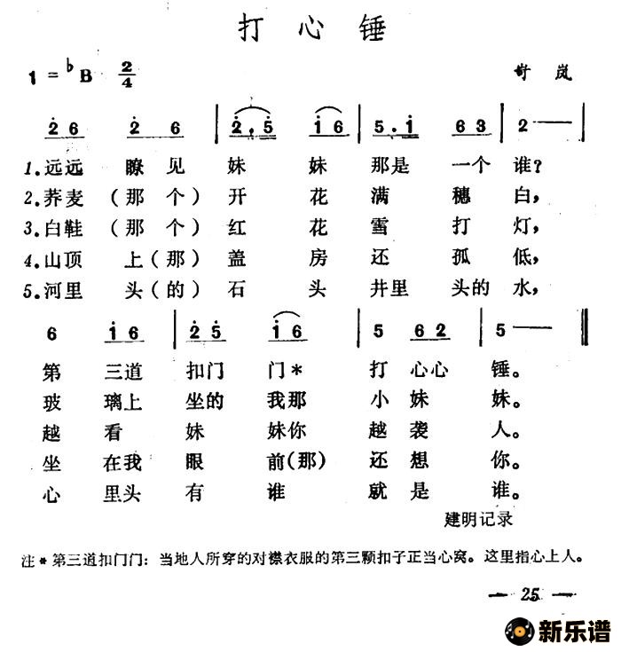 山西岢岚民歌演唱的打心锤歌词,打心锤简谱.