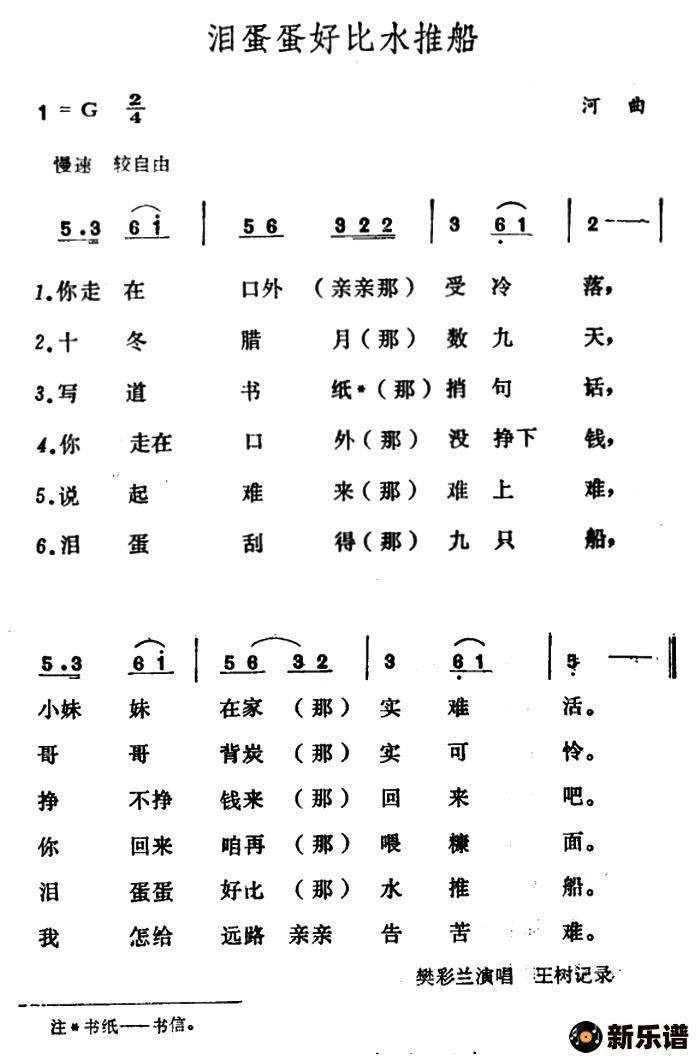 山西河曲民歌演唱的泪蛋蛋好比水推船歌词,泪蛋蛋好比水推船简谱.
