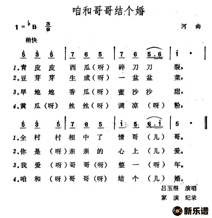 山西河曲民歌演唱的咱和哥哥结个婚歌词,咱和哥哥结个婚简谱.