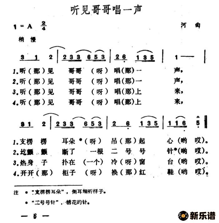 山西河曲民歌演唱的听见哥哥唱一声歌词,听见哥哥唱一声简谱.
