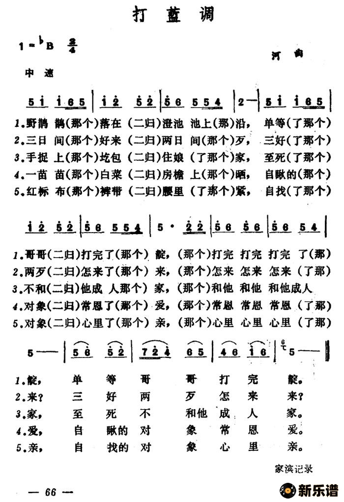 山西河曲号子演唱的打蓝调歌词,打蓝调简谱.