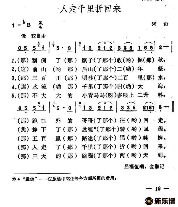 山西河曲民歌演唱的人走千里折回来歌词,人走千里折回来简谱.