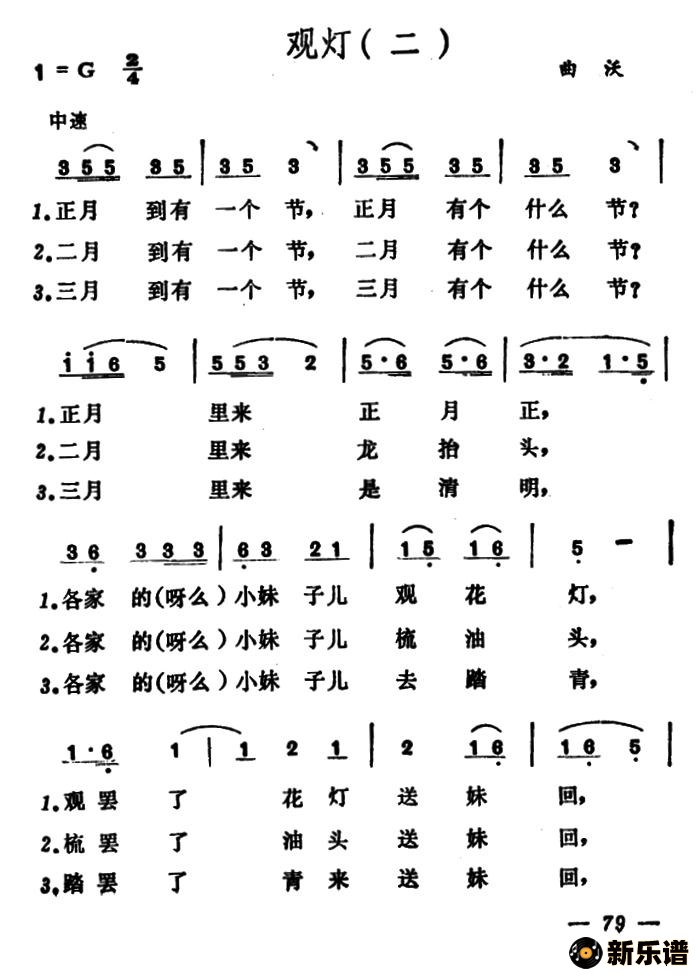 > 观灯(2首)(山西晋北、曲沃小调)简谱