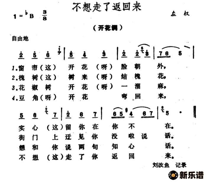 山西左权民歌演唱的不想走了返回来歌词,不想走了返回来简谱.