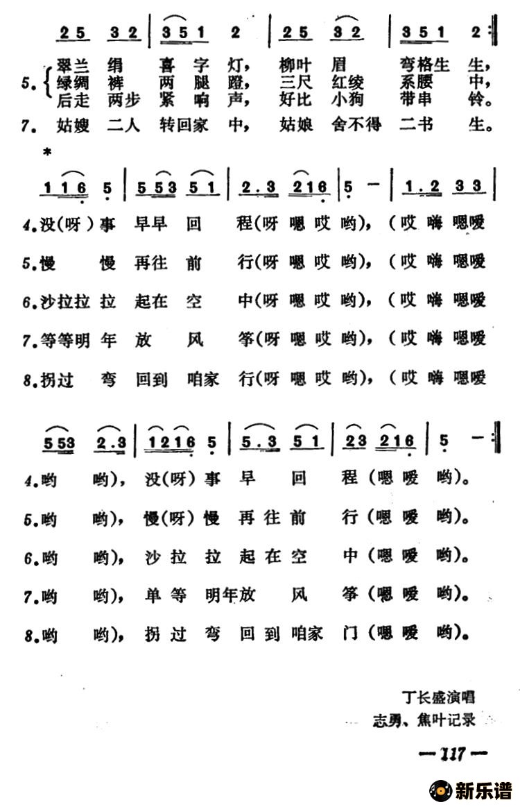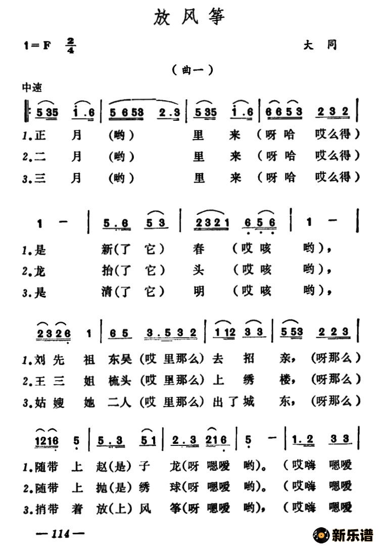 演唱的放风筝(山西大同民歌、2首)歌词,放风筝(山西大同民歌、2首)简谱.