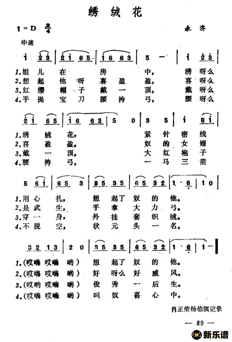演唱的绣绒花 (山西永济小调)歌词,绣绒花 (山西永济小调)简谱.