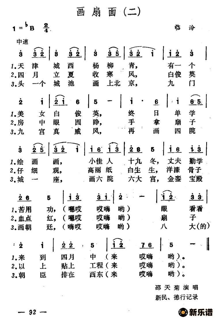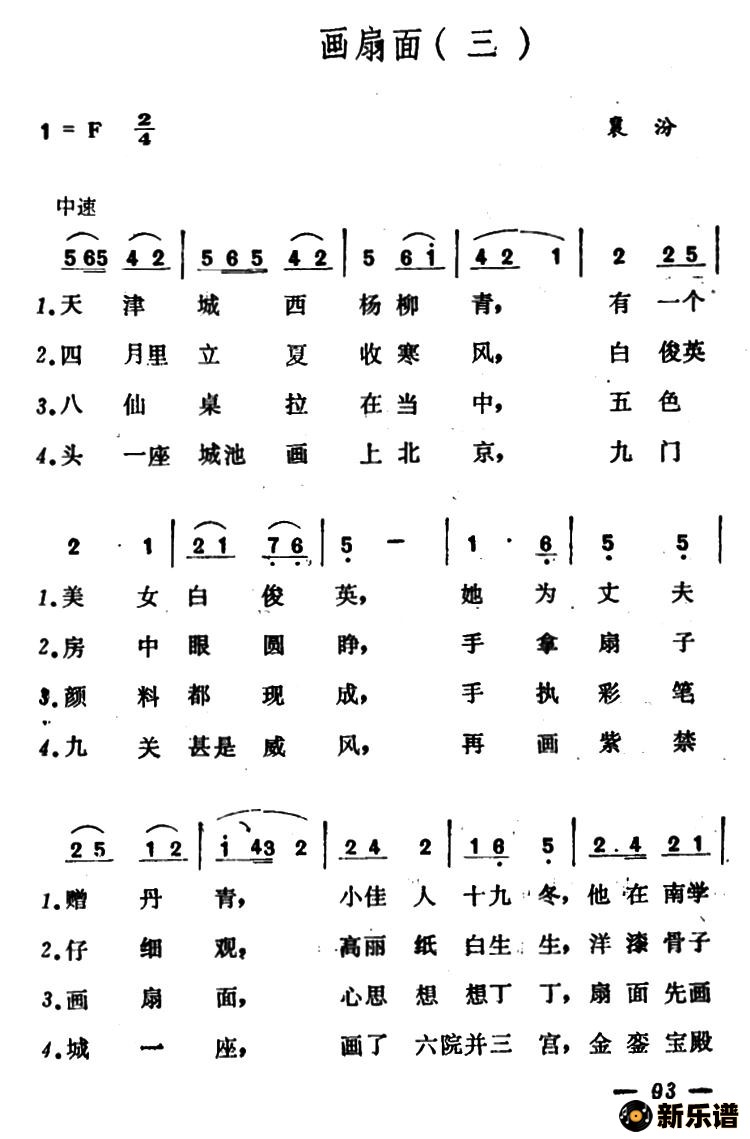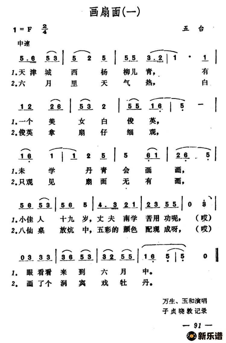 演唱的画扇面(山西小调3首)歌词,画扇面(山西小调3首)简谱.