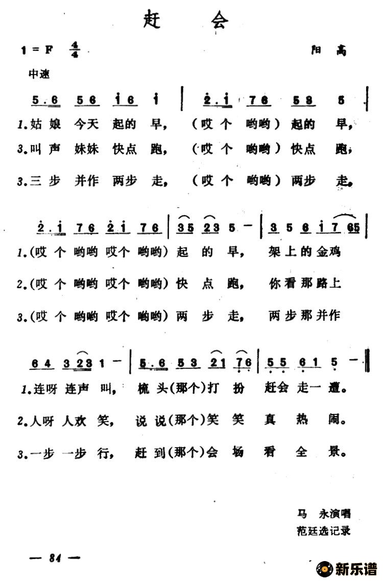 山西阳高小调演唱的赶会歌词,赶会简谱.