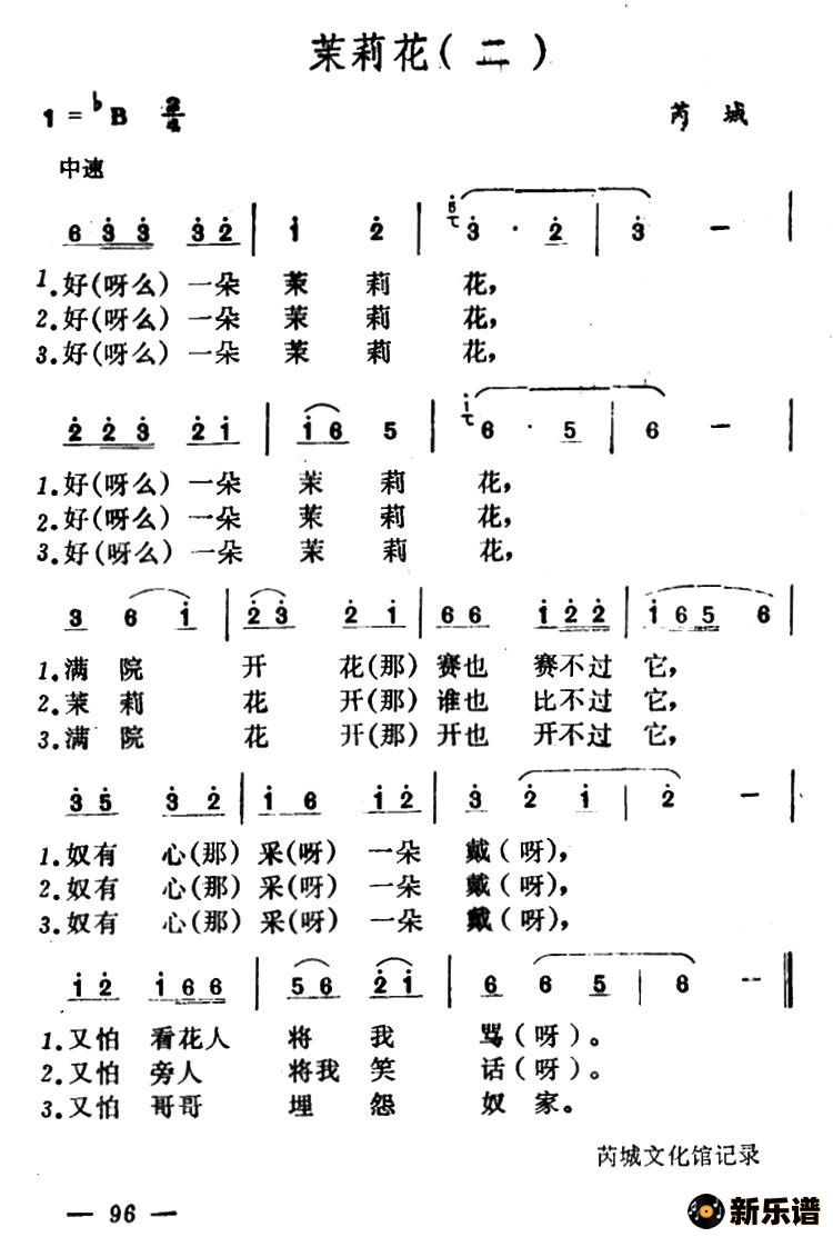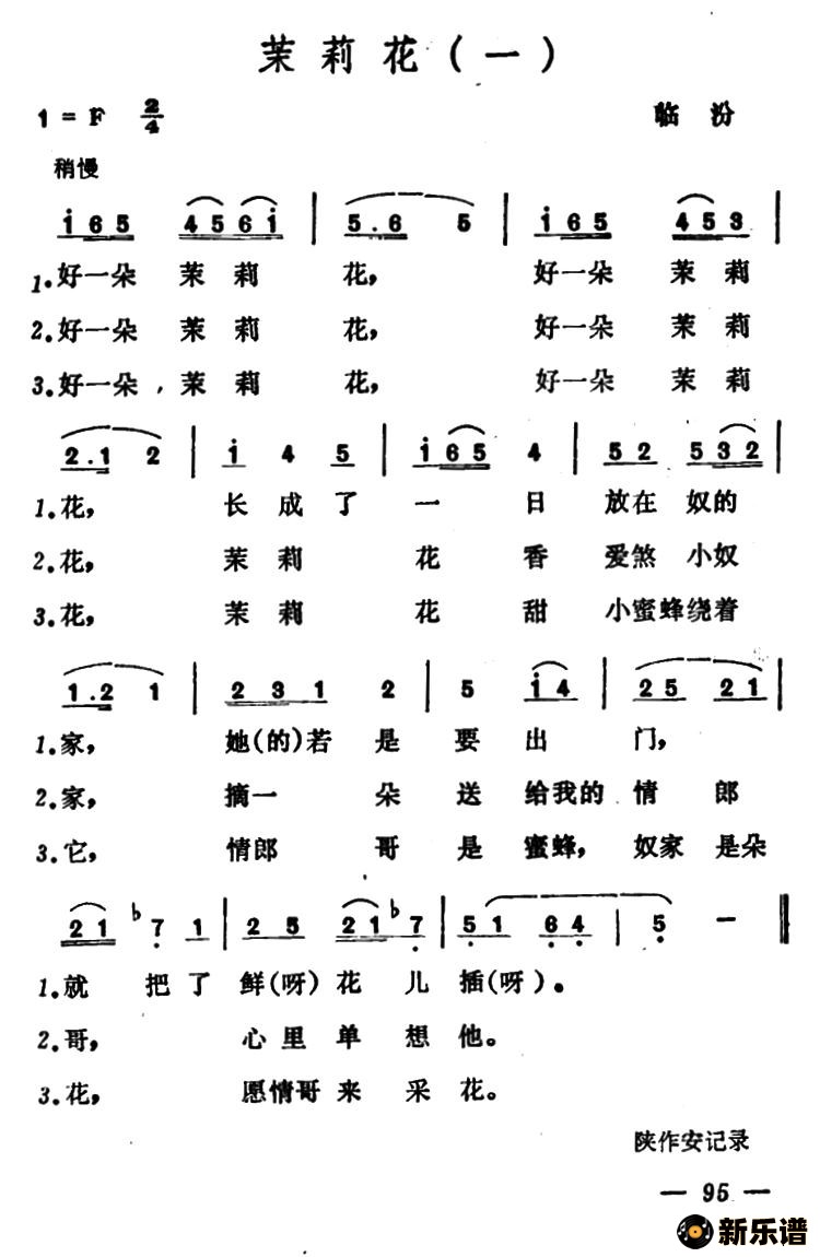 演唱的茉莉花(山西小调2首)歌词,茉莉花(山西小调2首)简谱.