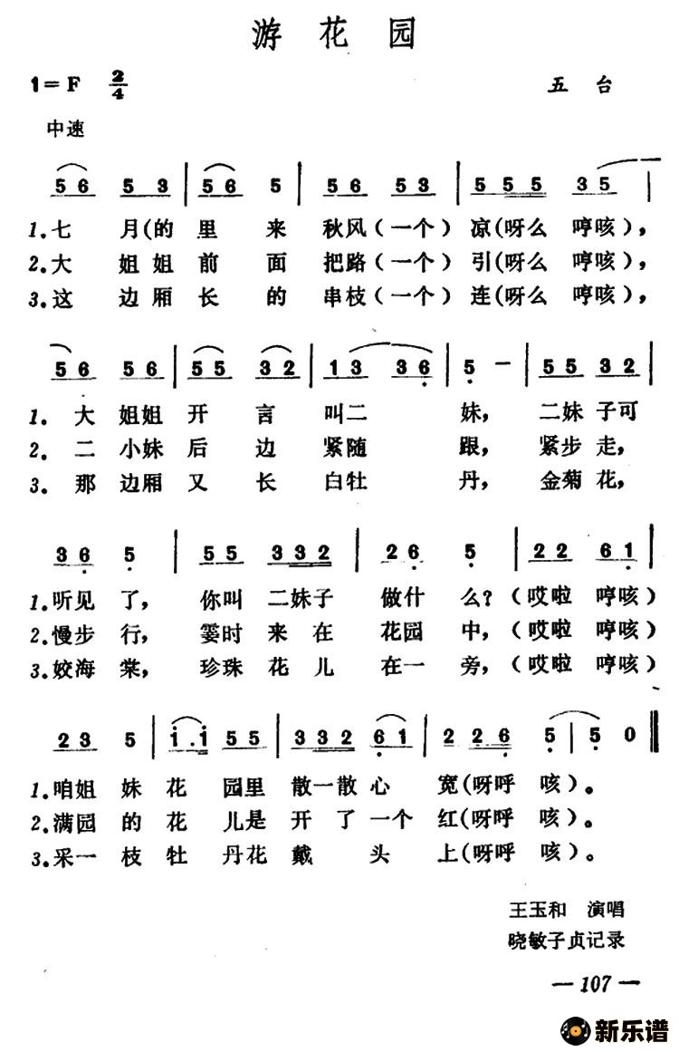 山西 五台小调演唱的游花园歌词,游花园简谱.
