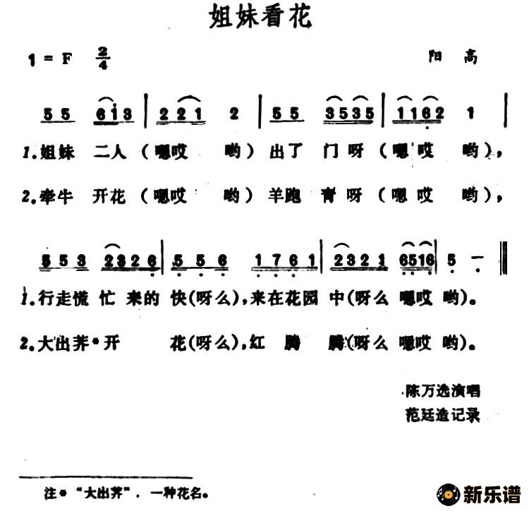 山西 阳高小调演唱的姐妹看花歌词,姐妹看花简谱.