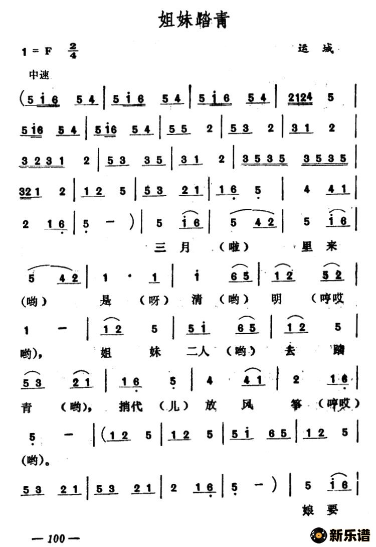 山西运城小调演唱的姐妹踏青歌词,姐妹踏青简谱.