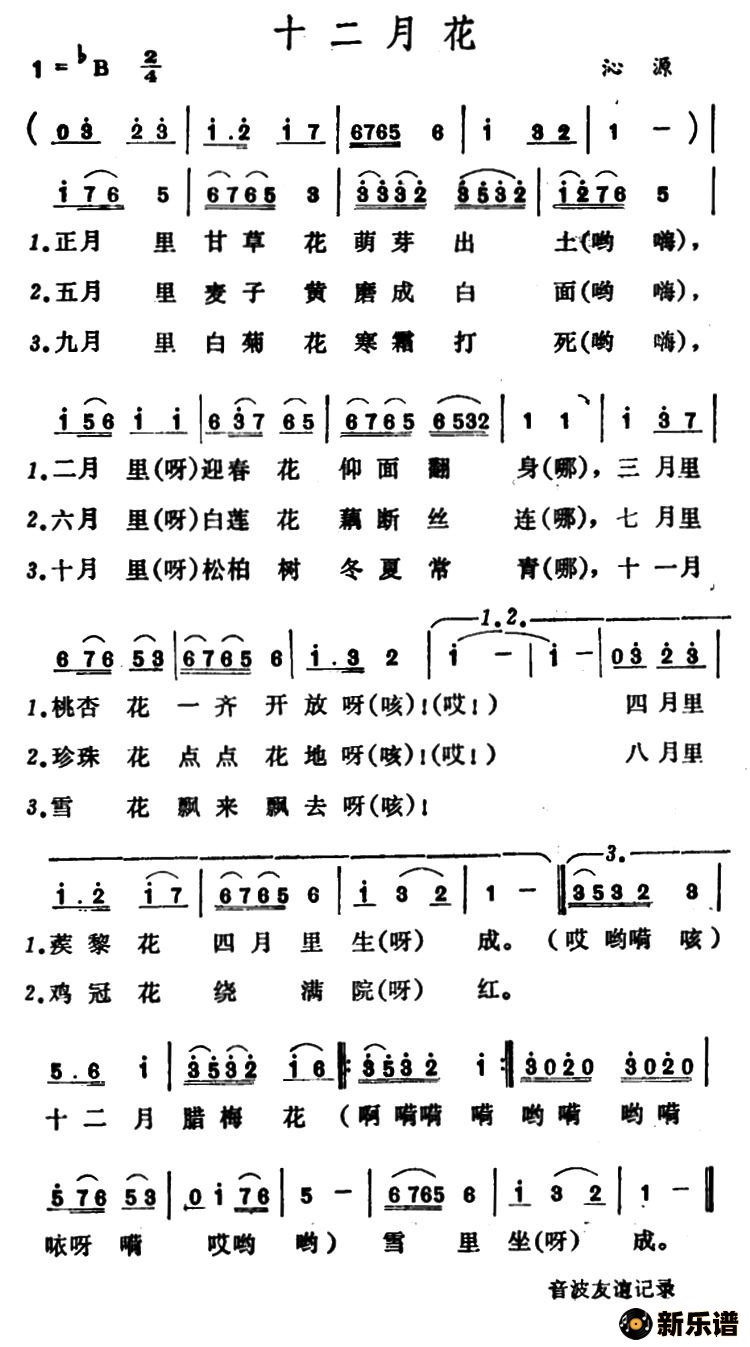 演唱的十二月花 (山西沁源小调)歌词,十二月花 (山西沁源小调)简谱.