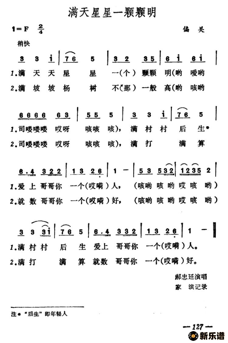 《满天星星一颗颗明》简谱 山西 偏关小调