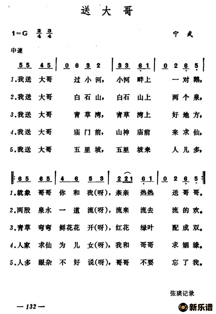 演唱的送大哥(山西宁武小调)歌词,送大哥(山西宁武小调)简谱.