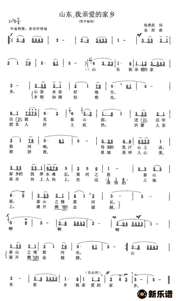 金西演唱的山东,我亲爱的家乡歌词,山东,我亲爱的家乡简谱.