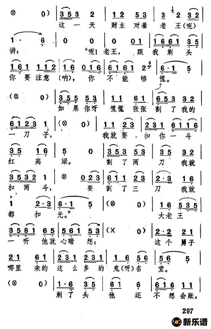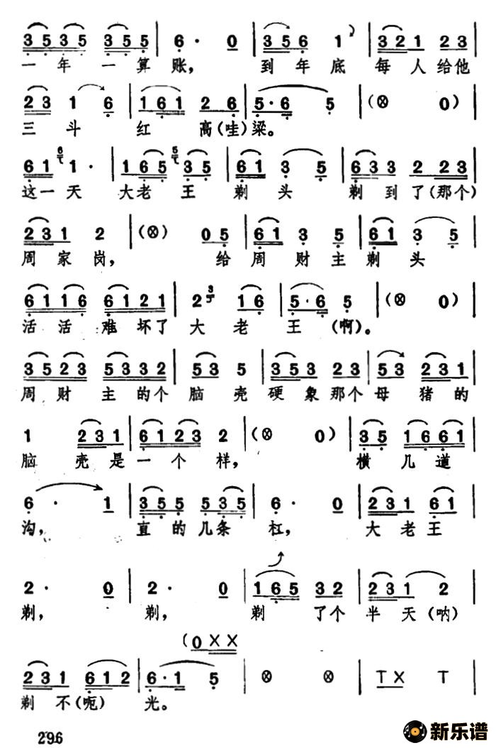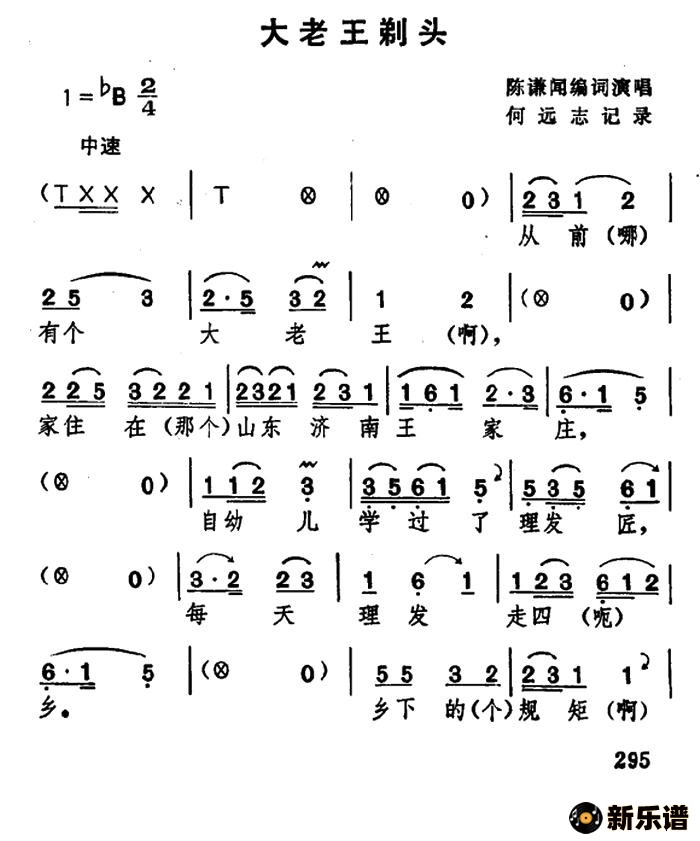 > [湖北大鼓]大老王剃头简谱