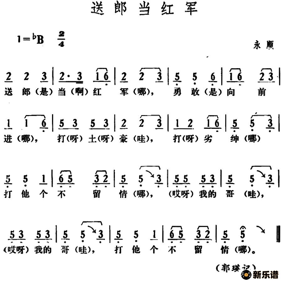 演唱的送郎当红军(湖南永顺革命民歌)歌词,送郎当红军(湖南永顺革命民歌)简谱.