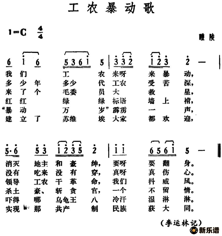 湖南醴陵革命民歌演唱的工农暴动歌歌词,工农暴动歌简谱.