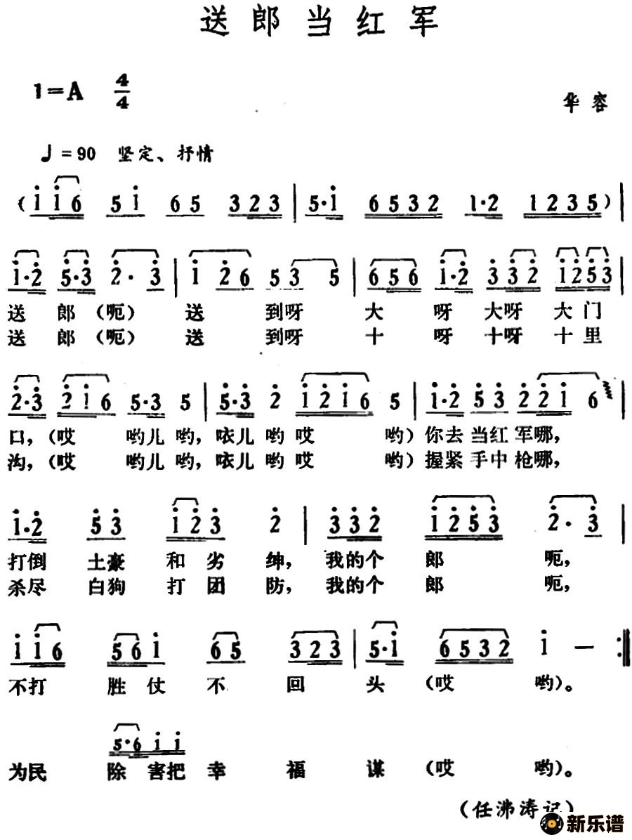 演唱的送郎当红军(湖南华容革命民歌)歌词,送郎当红军(湖南华容革命民歌)简谱.