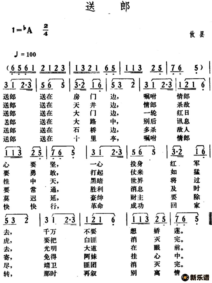 演唱的送郎(湖南攸县革命民歌)歌词,送郎(湖南攸县革命民歌)简谱.