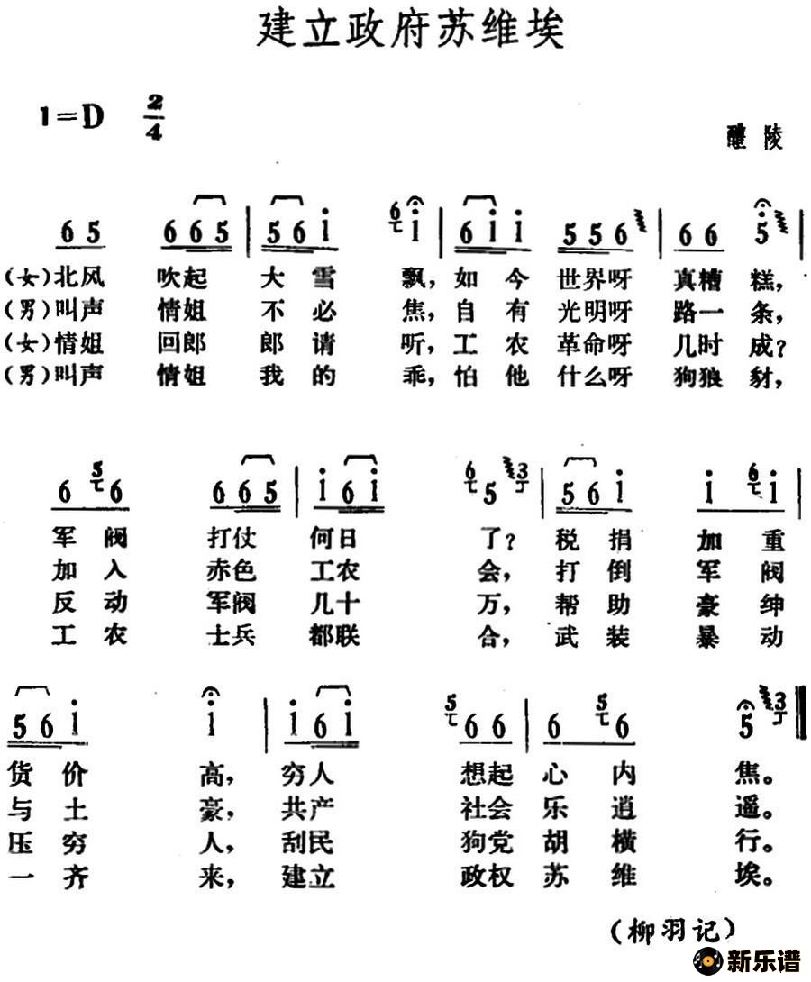 湖南醴陵革命民歌演唱的建立政府苏维埃)歌词,建立政府苏维埃)简谱.