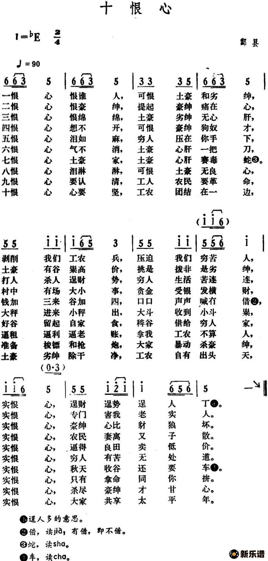 十恨心/湖南酃县革命民歌 相关曲谱