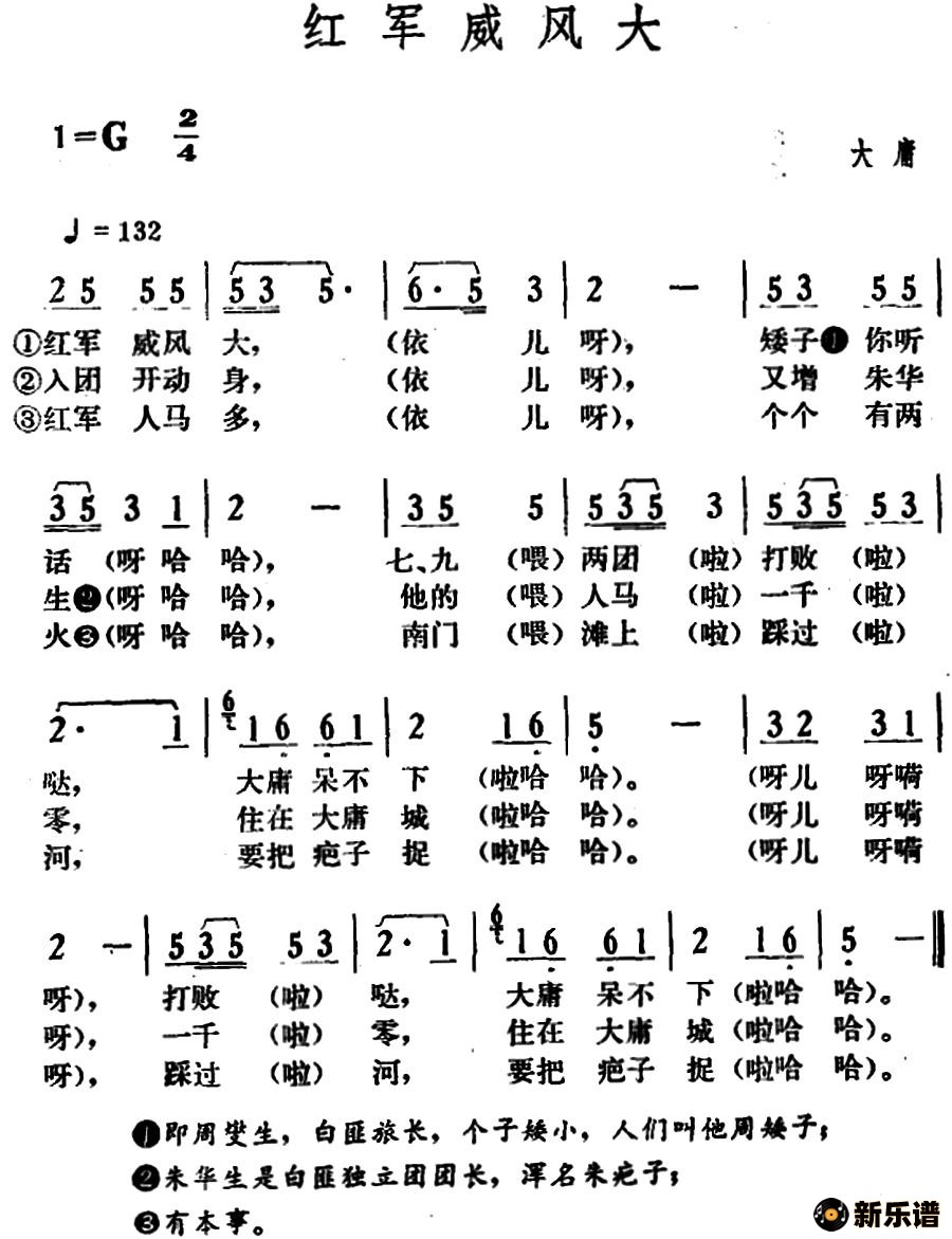 湖南大庸革命民歌演唱的红军威风大歌词,红军威风大简谱.