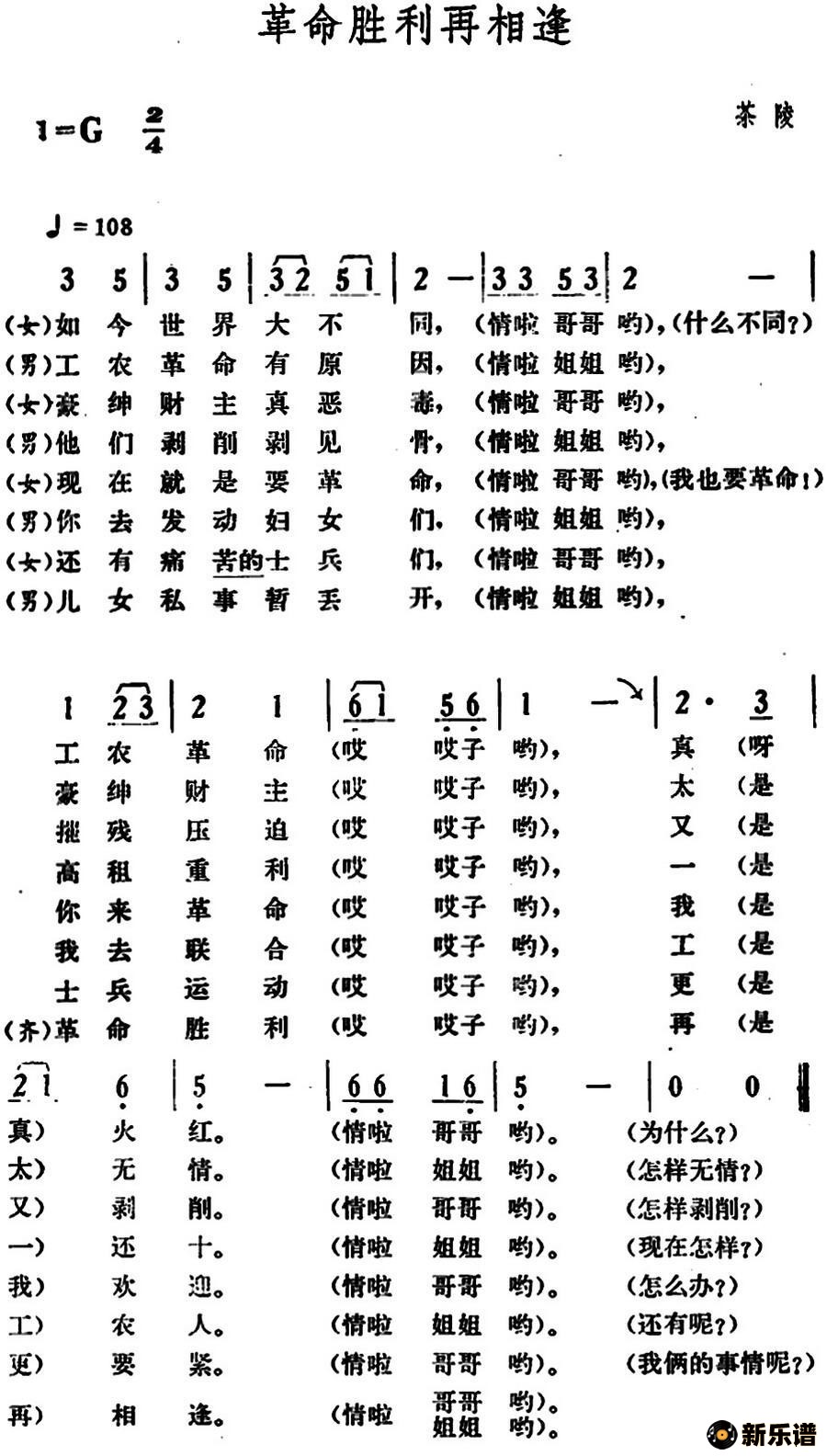 《革命胜利再相逢》简谱 湖南茶陵革命民歌