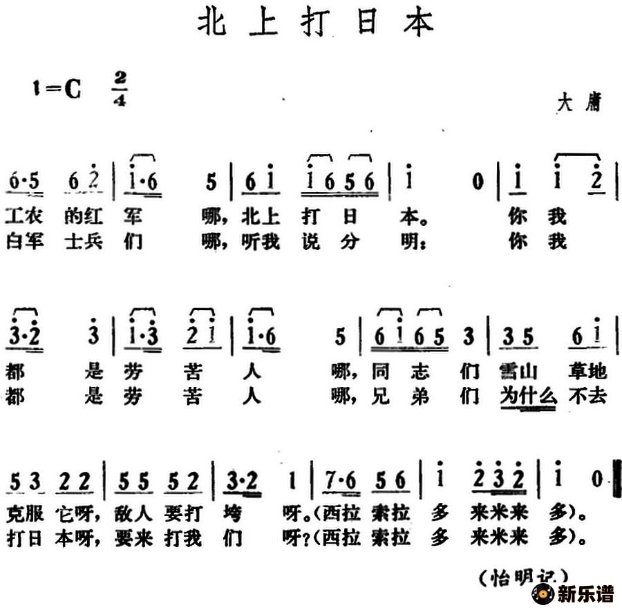 湖南大庸革命民歌演唱的北上打日本歌词,北上打日本简谱.