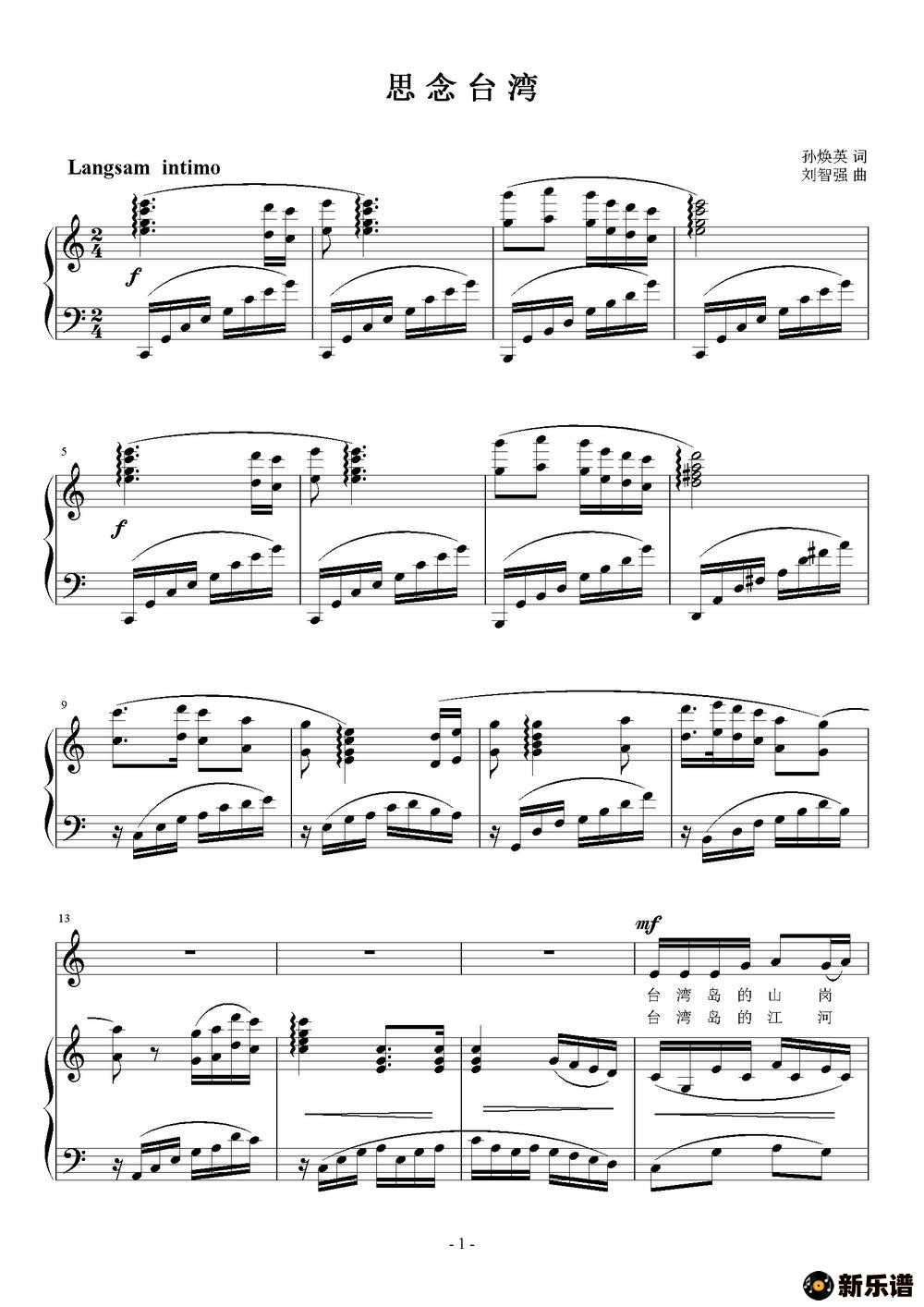 刘智强演唱的思念台湾(正谱)歌词,思念台湾(正谱)简谱.