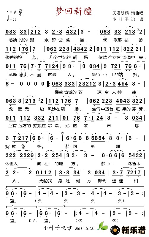 天漠胡杨演唱的梦回新疆歌词,梦回新疆简谱.
