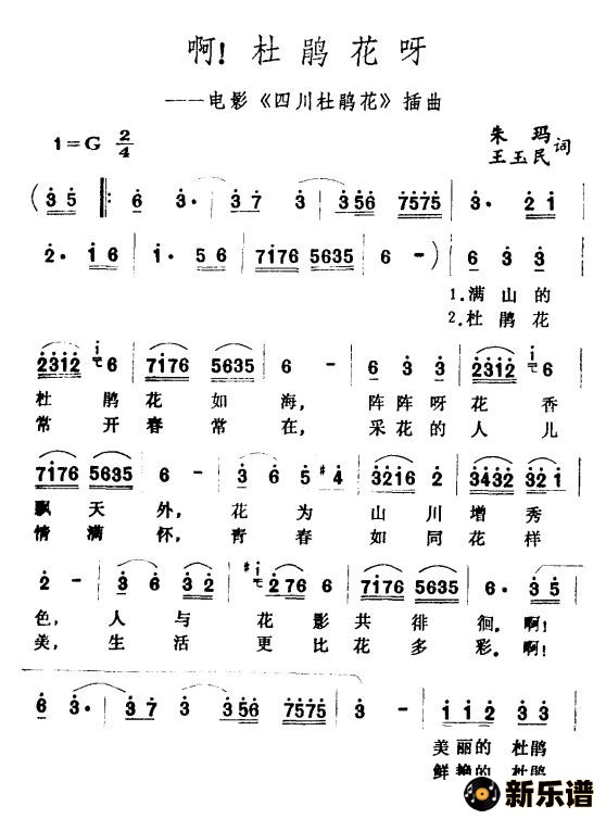王酩演唱的啊!杜鹃(电影《四川杜鹃花》插曲)歌词,啊!杜鹃(电影《四川杜鹃花》插曲)简谱.