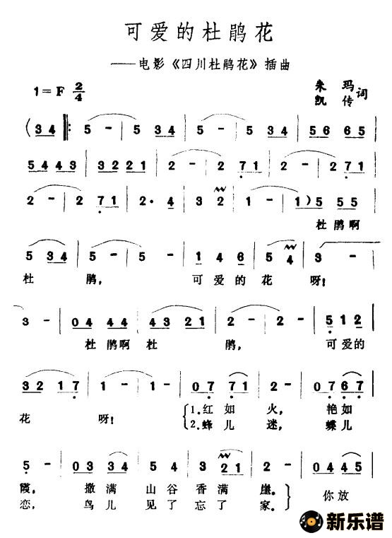 王酩演唱的可爱的杜鹃花(电影《四川杜鹃花》插曲)歌词,可爱的杜鹃花(电影《四川杜鹃花》插曲)简谱.