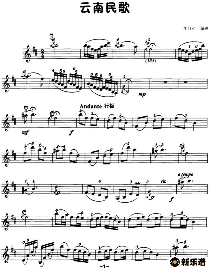 演唱的云南民歌(李自立编曲)歌词,云南民歌(李自立编曲)简谱.