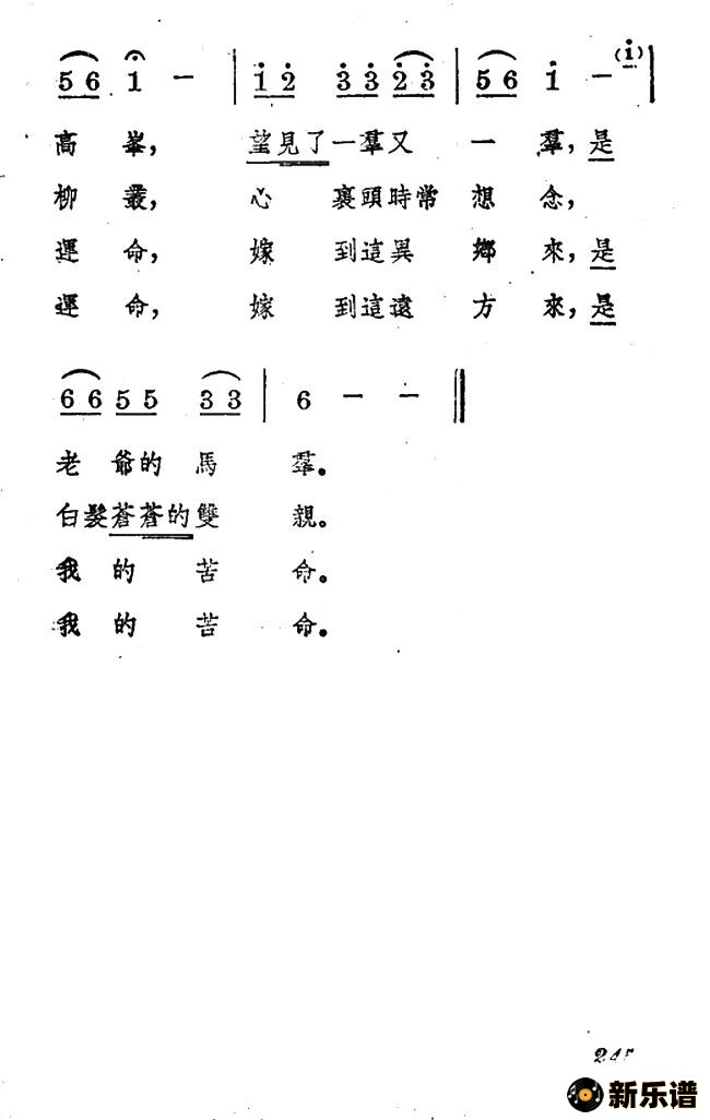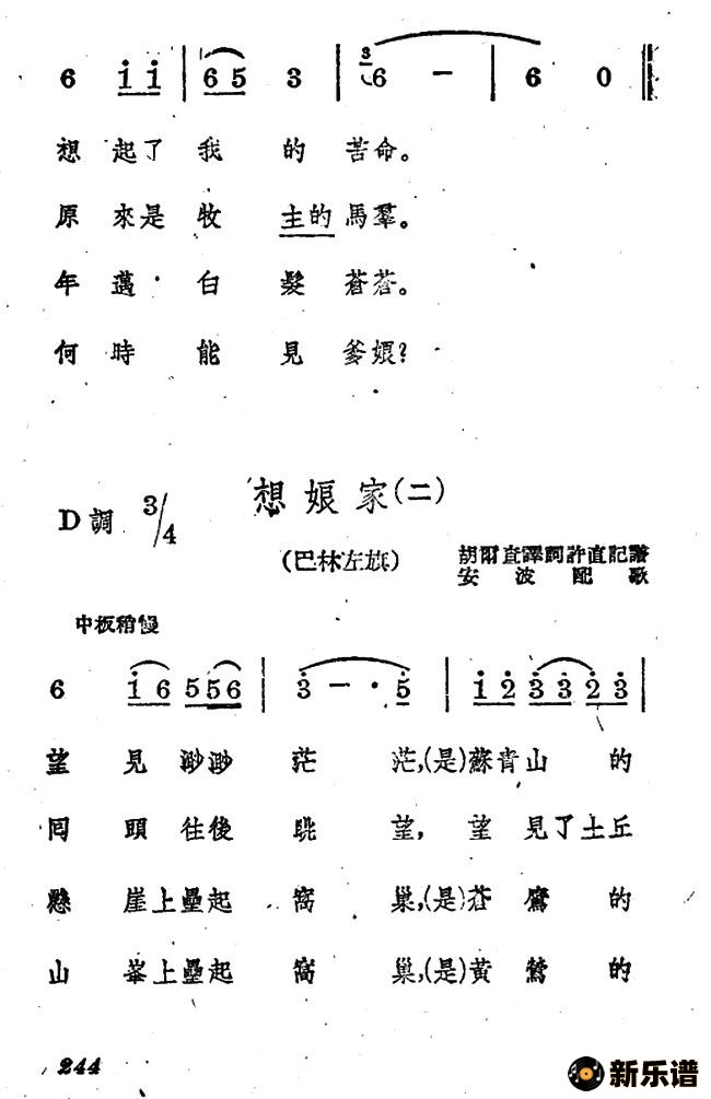 《想娘家(二首)》简谱 蒙古族民歌、安波配歌