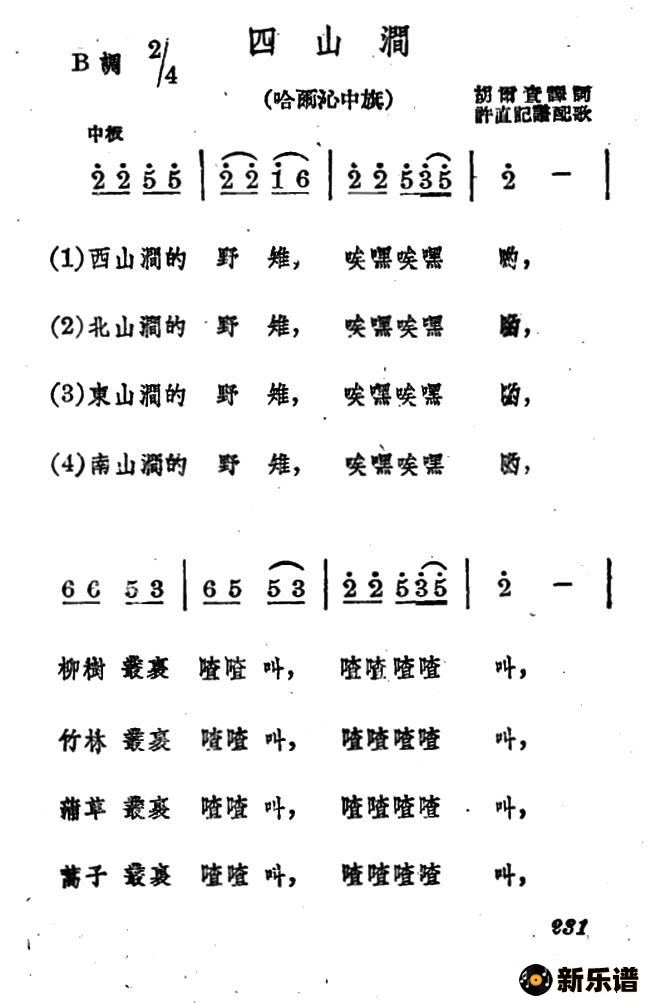 《四山涧》简谱 蒙古族民歌、许直记谱配歌