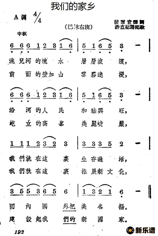 蒙古族民歌、许值记谱配歌演唱的我们的家乡歌词,我们的家乡简谱.