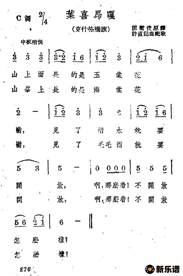 蒙古族民歌、许直记谱配歌演唱的叶喜昂嘎歌词,叶喜昂嘎简谱.