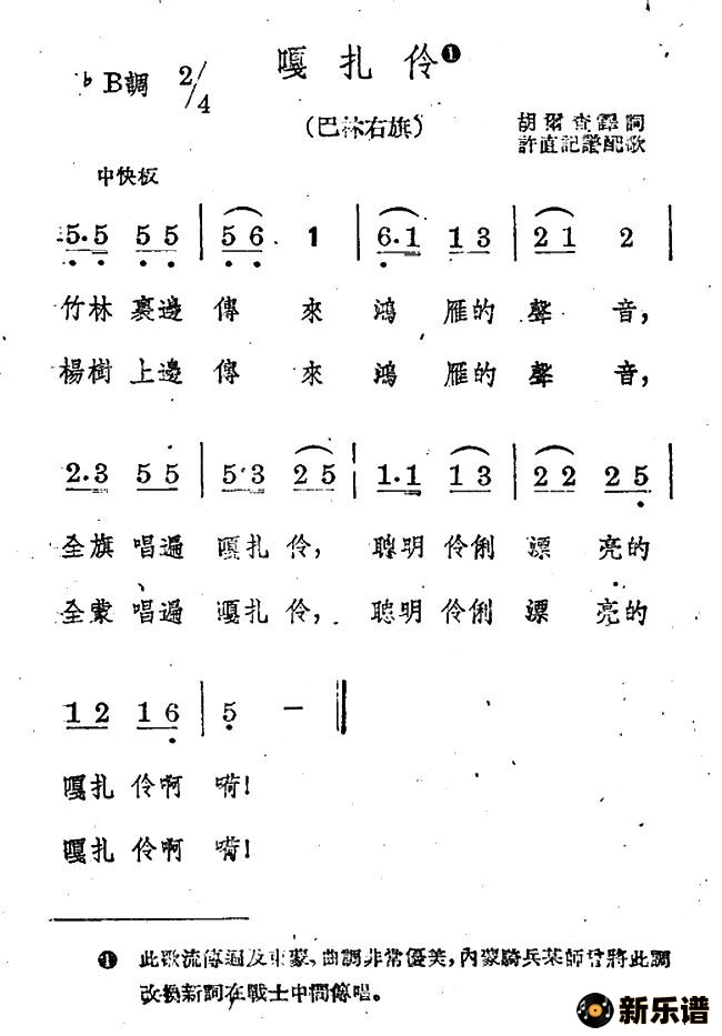 《嘎扎伶》简谱 蒙古族民歌、许直记谱配歌