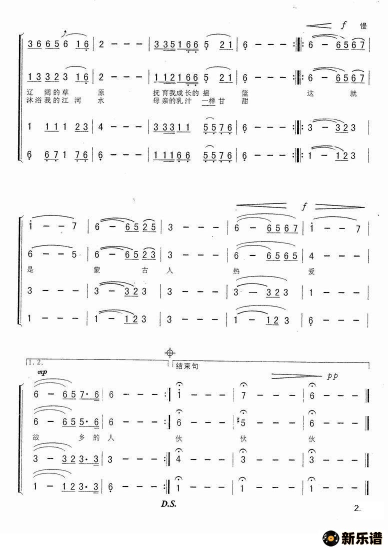《蒙古人(男声四重唱)》简谱 深圳月光合唱团