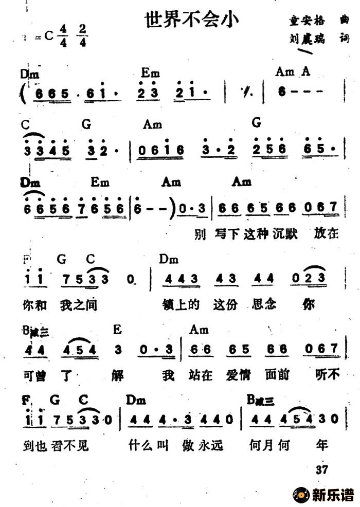 《世界不会小(又名:开阔的心)(带和弦)》简谱 童安格