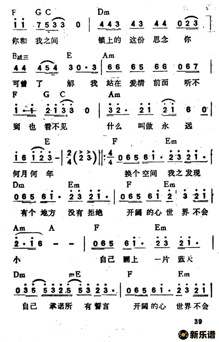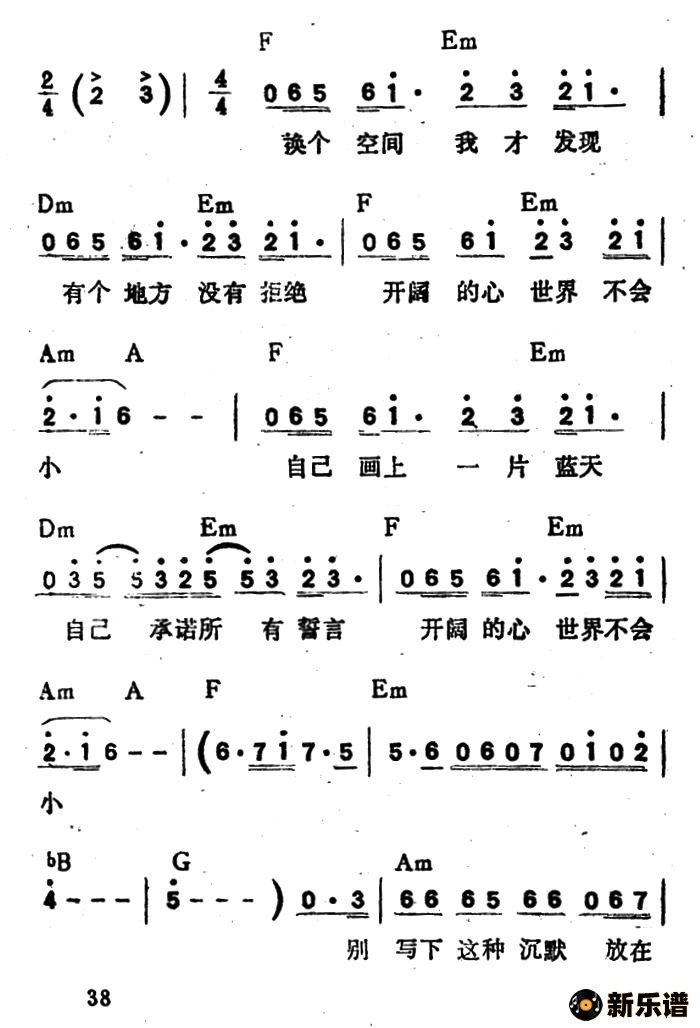 童安格演唱的世界不会小(又名:开阔的心)(带和弦)歌词,世界不会小(又名:开阔的心)(带和弦)简谱.