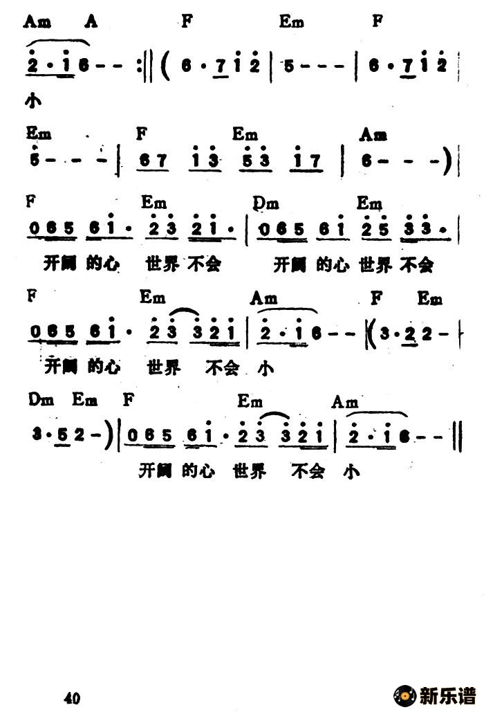 > 世界不会小(又名:开阔的心)(带和弦)简谱