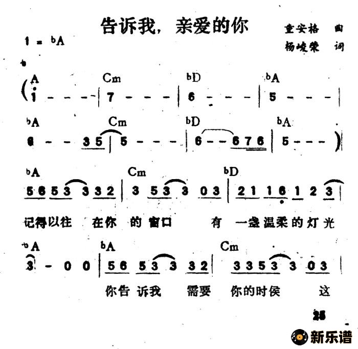 《告诉我,亲爱的你》简谱 童安格