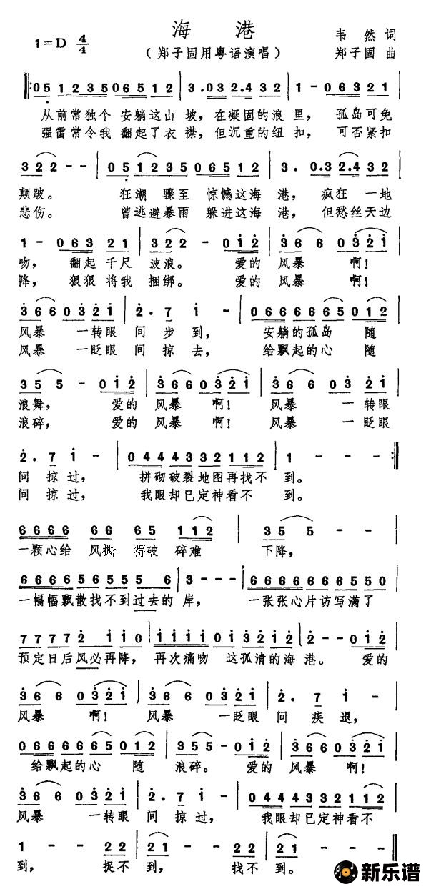郑子固演唱的海港歌词,海港简谱.